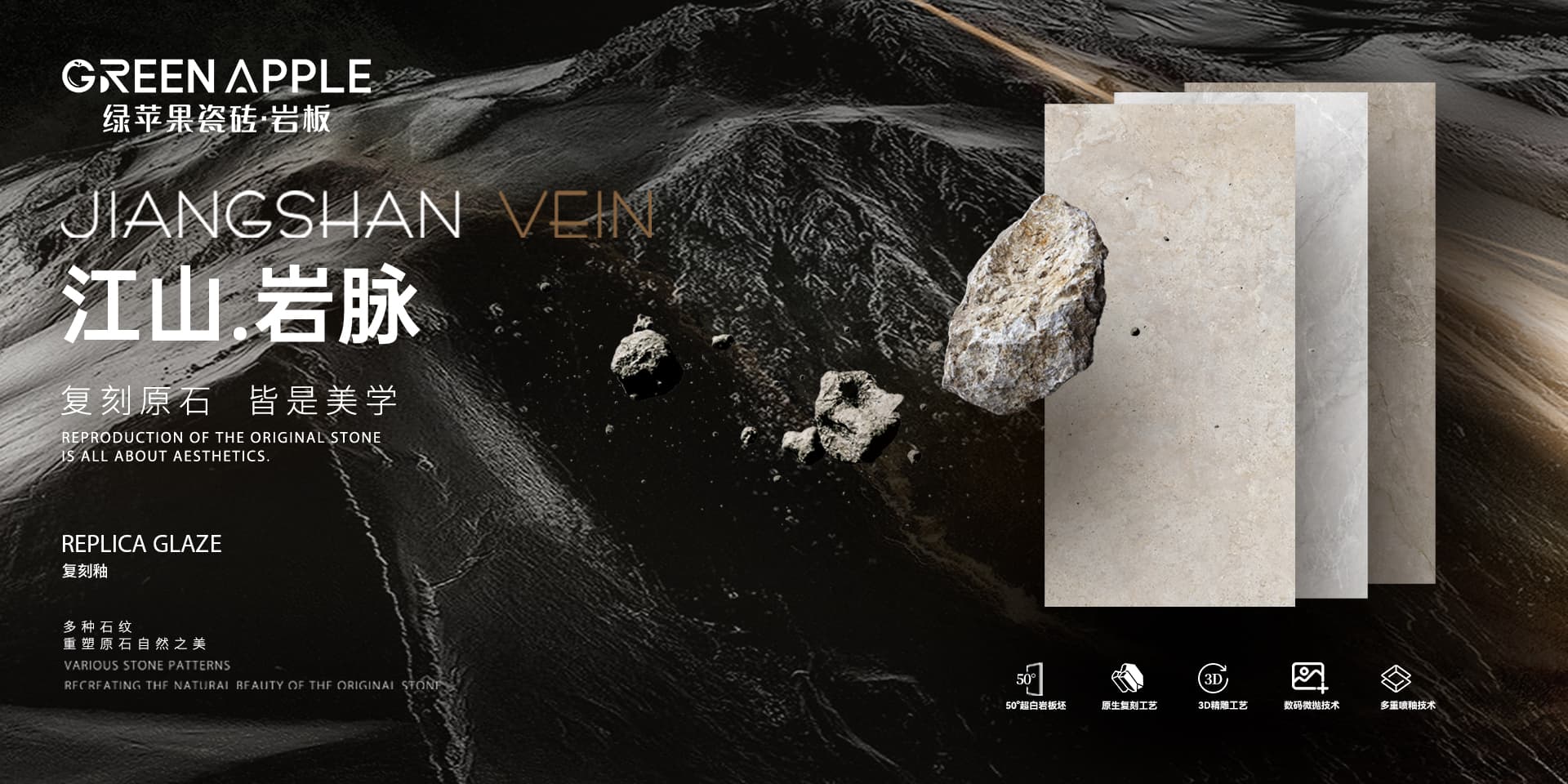 綠蘋果瓷磚·巖板創(chuàng)立于廣東佛山,始于 2010 年,背靠實(shí)力強(qiáng)大的將軍陶瓷集團(tuán),長久堅(jiān)持自主設(shè)計(jì)、研發(fā)、生產(chǎn),讓綠蘋果的產(chǎn)品不斷滿足消費(fèi)者對現(xiàn)代家居裝修裝飾需求,以“給每個(gè)年輕人一個(gè)夢想的家”為品牌使命,傳承蘋果改變世界的神奇力量,構(gòu)建現(xiàn)代人居空間的整體解決方案,著力打造一個(gè)綠色環(huán)保、年輕有活力的現(xiàn)代品牌。