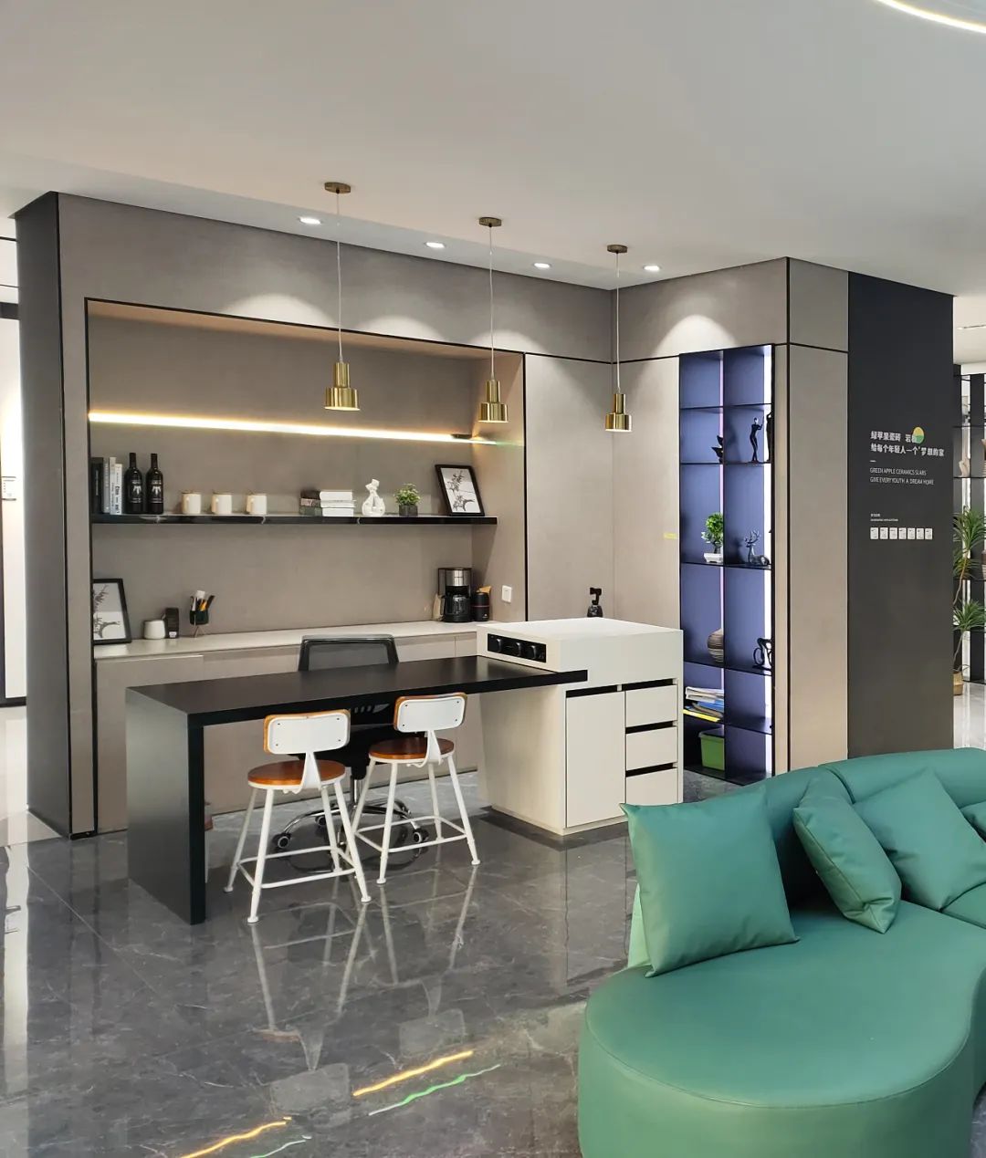 大膽的材質混搭與創新的組合方式,以最貼近生活的真實場景展現,激發顧客的無限家裝靈感。這里,每一種材質的碰撞和融合,都在訴說著設計的故事,成為一個集創意激發與美學體驗為一體的互動空間。
