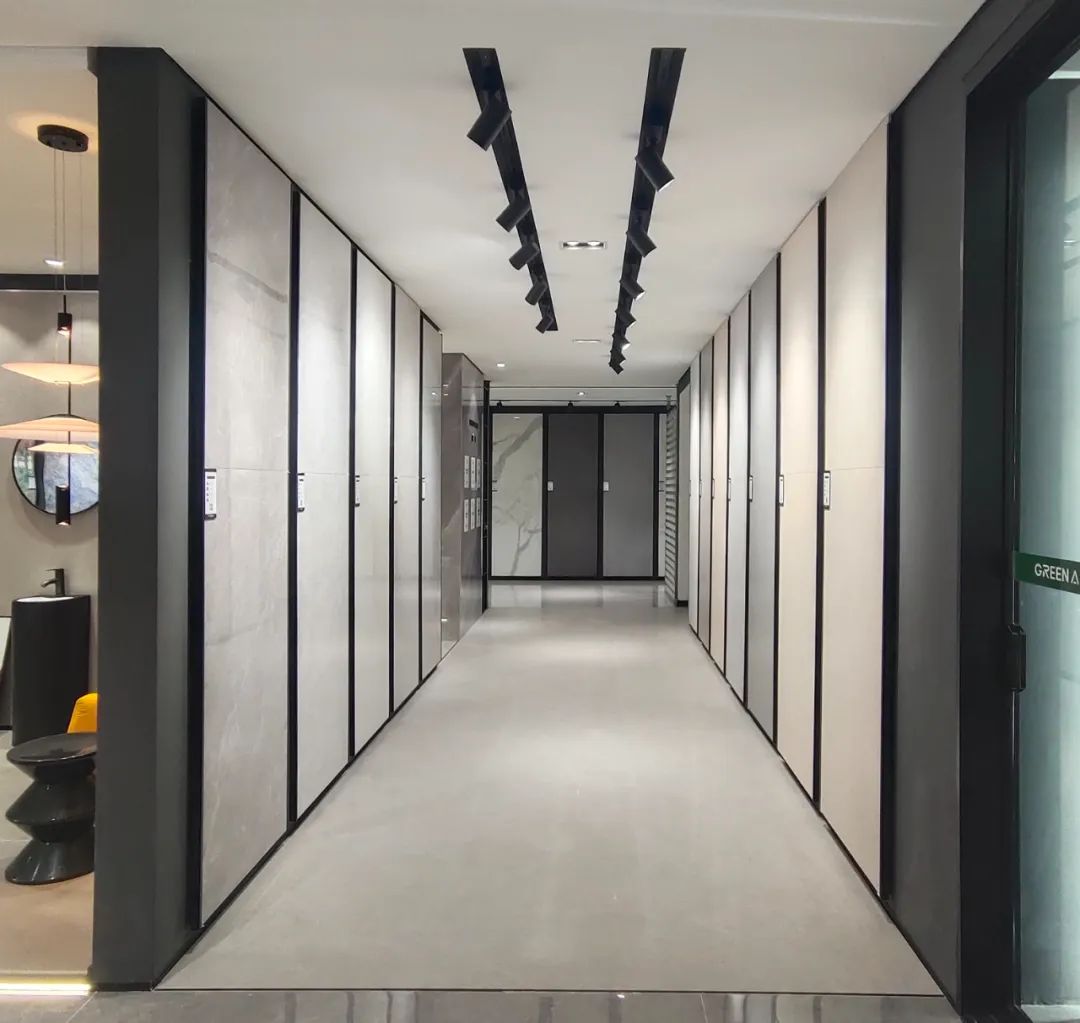 通過燈光變化營造舒適的氛圍,確保每款瓷磚的肌理、釉面與質感得以完美呈現。產品以自然有序的方式陳列,多樣化展示手法充分展現了每塊瓷磚的獨特魅力,滿足不同顧客的審美品味和需求。